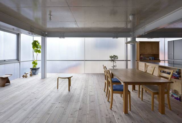 这间发光的房子由建筑师谷尻誠设计,其创新之处在于它混淆了传统的惯例。“我们可以将原本分开的范畴混合在一起,”谷尻誠说,“窗户可以是墙而强也可以是窗户。”