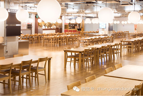 第三航厦用餐空间,以黄光搭配木质地板、餐桌椅让空间增添许多温暖气息。因应部分红眼航班为凌晨起降,第三航厦美食街从凌晨4点起营业至晚上9点。