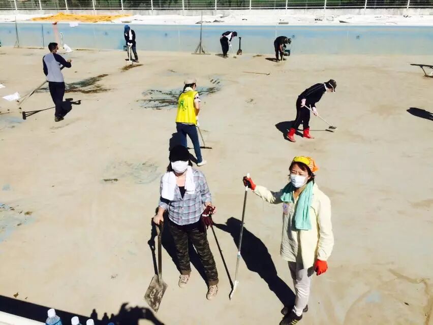 活动中,与其它志愿者一起,大家为受灾的石下中学校打扫整理了游泳池还有校外被冲垮的围栏。清除了杂草和淤泥。在本校老师的指导下,大家冒着烈日虽然汗流浃背,但是都默默的劳动,感恩这次付出的机会。并且也受到了灾区老师们用积极乐观的态度去面对眼前的灾难的那份坚强而淡定的鼓舞。