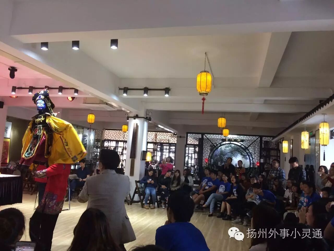 柳丝艺术团的木偶戏大师为大家表演扬州特色木偶戏,学生们纷纷鼓掌叫好,拍照留念