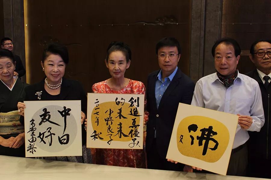 中日双方嘉宾展示墨宝,表达对中日关系的美好愿望